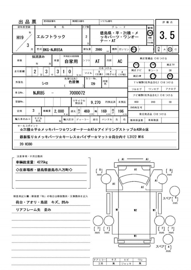 荷台・アオリ・鳥居 キズ、凹み・リアフレーム先 歪み