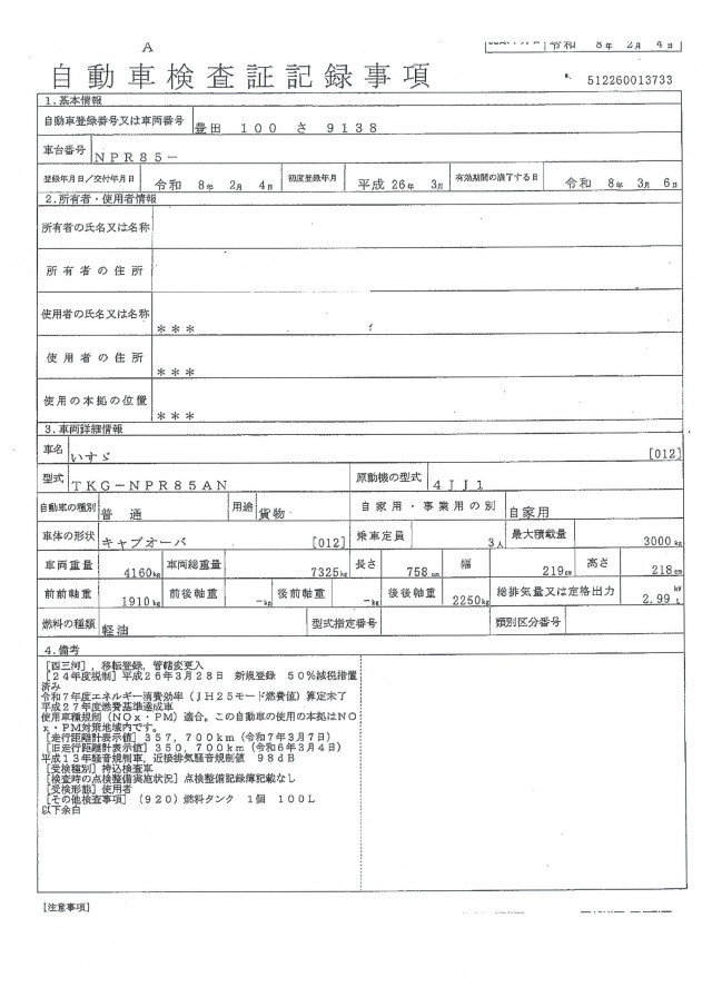 | 車検 | 車検有 (2026年3月) |