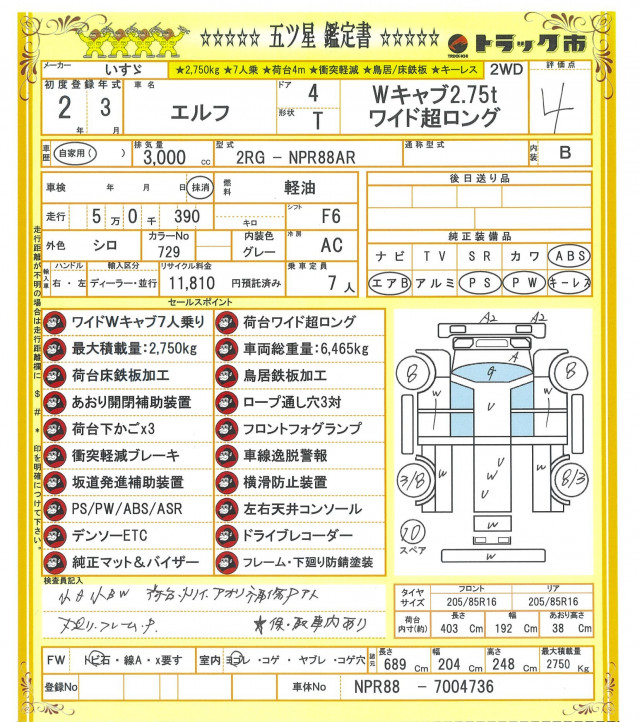 Wキャブ☆平ボディ☆ワイド超ロング☆7人乗り☆荷台4m☆荷台床・鳥居鉄板加工☆あおり開閉補助装置☆ロープ通し穴3対☆荷台下カゴ×3☆衝突被害軽減ブレーキ☆車線逸脱警報☆坂道発進補助装置☆横滑り防止装置☆ドライブレコーダー☆ETC☆6MT