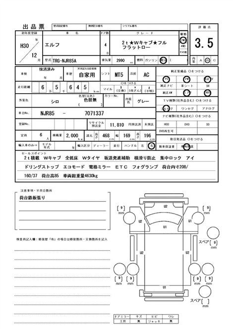 荷台内寸208/160/37 荷台高85 車両総重量4630kg
