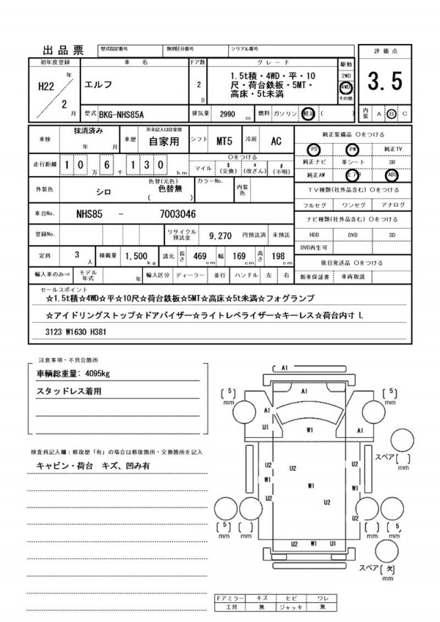 スタッドレス着用・キャビン・荷台 キズ、凹み有