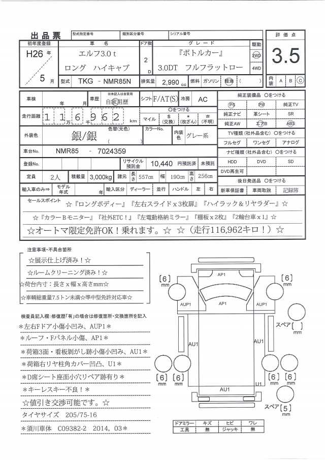 ☆H26年エルフ3.0t『ロング・ハイキャブ』FFL『ボトルカー』左右スライドⅹ3枚扉・ハイラック&リヤラダー(2人乗り!)☆(走行116,962キロ!)『カラーBモニター』『社外ETC&ドラレコ』『2輪台車』『棚板ⅹ2枚』『左電動格納ミラー』☆車輌総重量7.5トン未満☆準中型免許対応車☆オートマ限定免許OK!乗れます。☆遠方の方でも安心!ルームクリーニング済み!☆展示仕上げ済み!☆