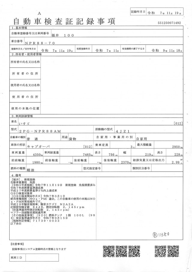 | 型式 | 2PG-NPR88AM |
