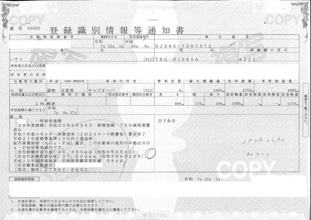 | 車検 | 抹消 |