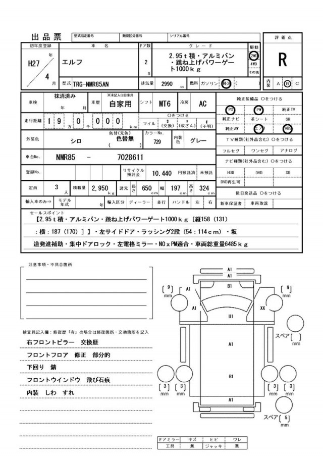 【2.95t積・アルミバン・跳ね上げパワーゲート1000kg[縦158(131):横:187(170)]】・左サイドドア・ラッシングレール2段(54:114cm)・坂道発進補助・集中ドアロック・左電格ミラー・NOxPM適合・車両総重量6485kg