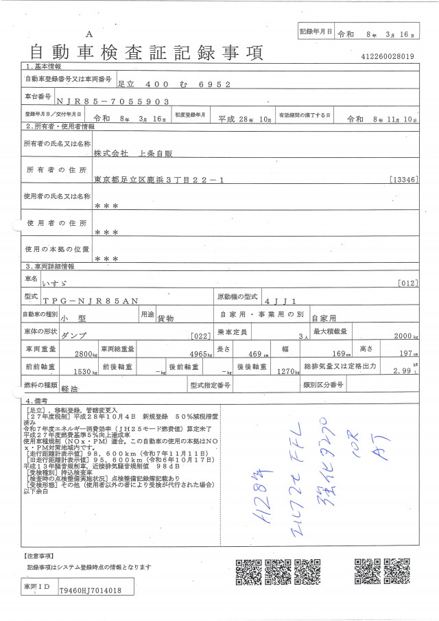 | 車検 | 車検有 (2026年11月) |