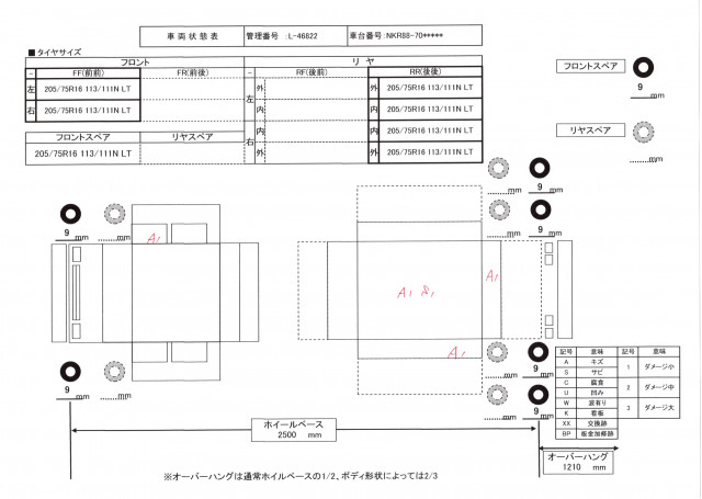 ▲車両外装:屋外保管によるキズ、サビ小程度有り ▲内装:スリキズ小、メーターパネルキズ小 ▲リヤあおり:スリキズ小 ▲床面:キズ、サビ小