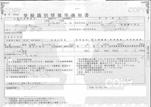 | 車検 | 抹消 |