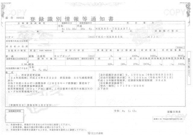 | 車検 | 抹消 |