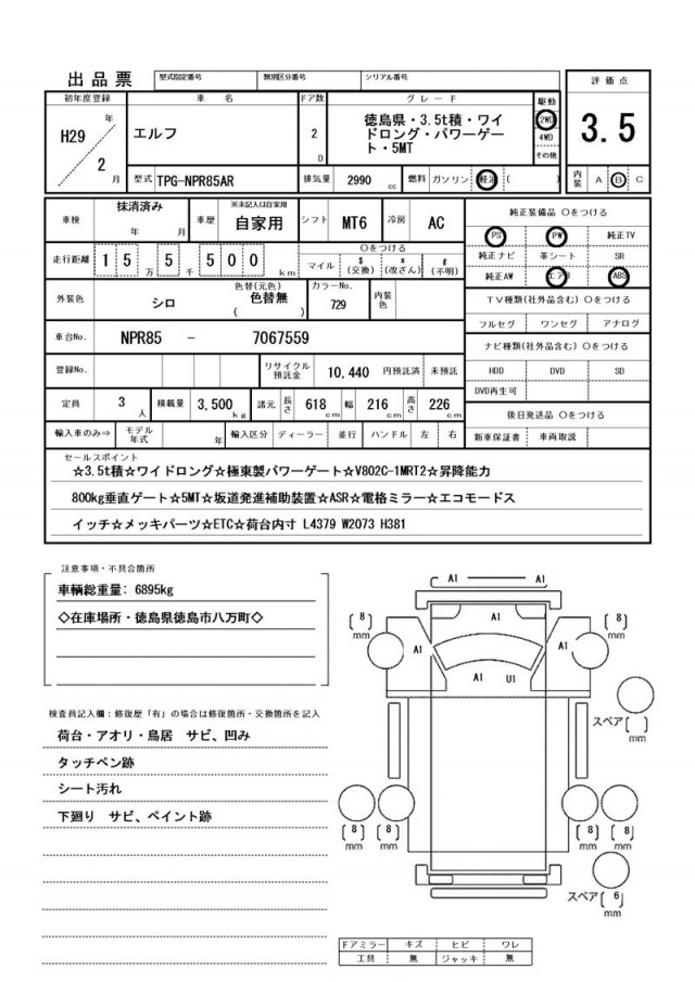 荷台・アオリ・鳥居 サビ、凹み・タッチペン跡・シート汚れ・下廻り サビ、ペイント跡