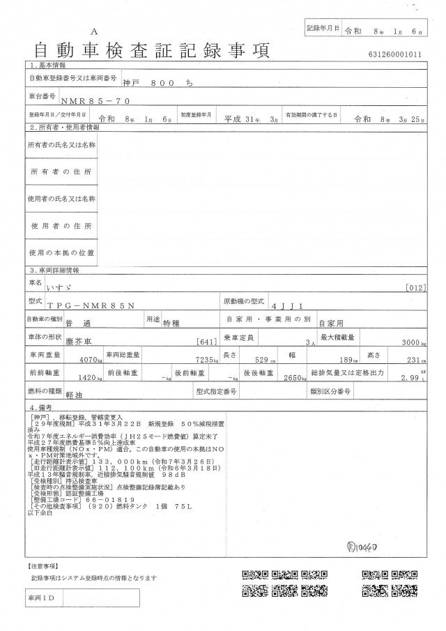 | 走行距離 | 138,000(km) |
