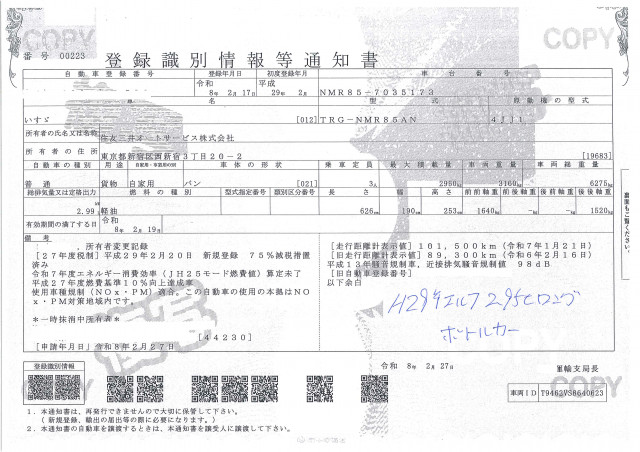 | 車検 | 抹消 |
