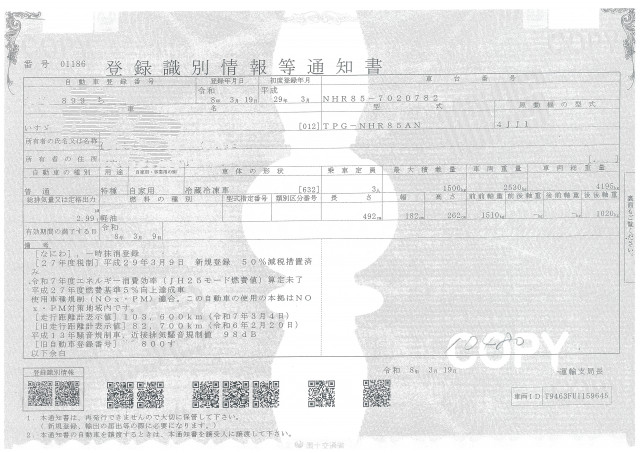 | 車検 | 抹消 |