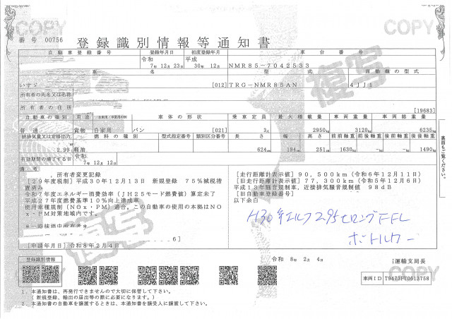 | 車検 | 抹消 |