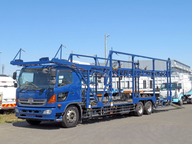2台積み!ユニック製のキャリアカーです。 アドブルーレス仕様で、ミッションはMT6速です。 フロアー長は1F:5.63m 2F:3.46mで、ウインチもしっかりついております。 積載が3,450㎏としっかりとれております。 新古車の金額が高くなっている現状です。 こちらの車両はラジコン付き・電動歩みと使い勝手も良い一台です。
