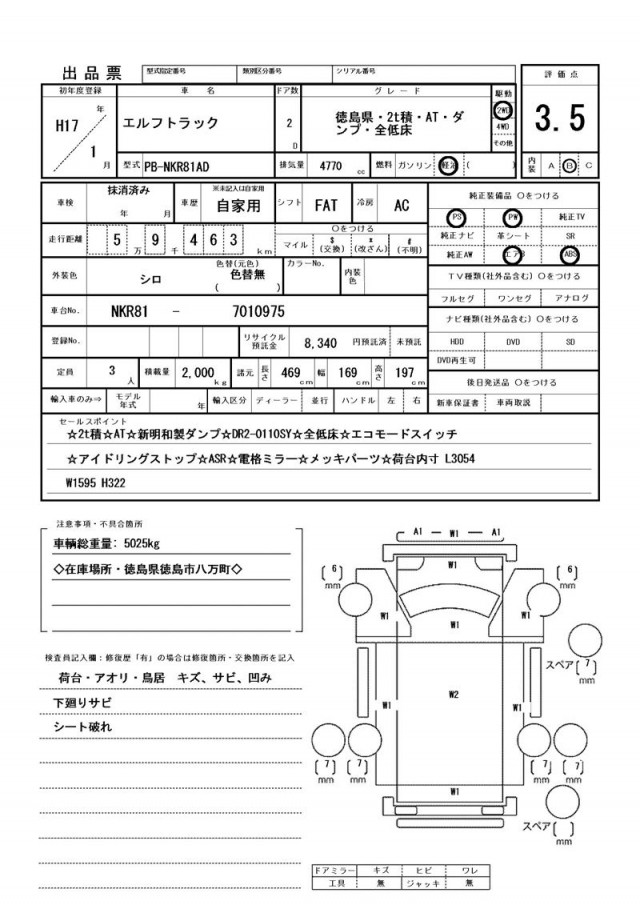 荷台・アオリ・鳥居 キズ、サビ、凹み・下廻りサビ・シート破れ