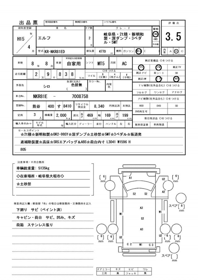 下廻り サビ(ペイント済)・キャビン・荷台 サビ、凹み、キズ・荷箱 ステンレス張り