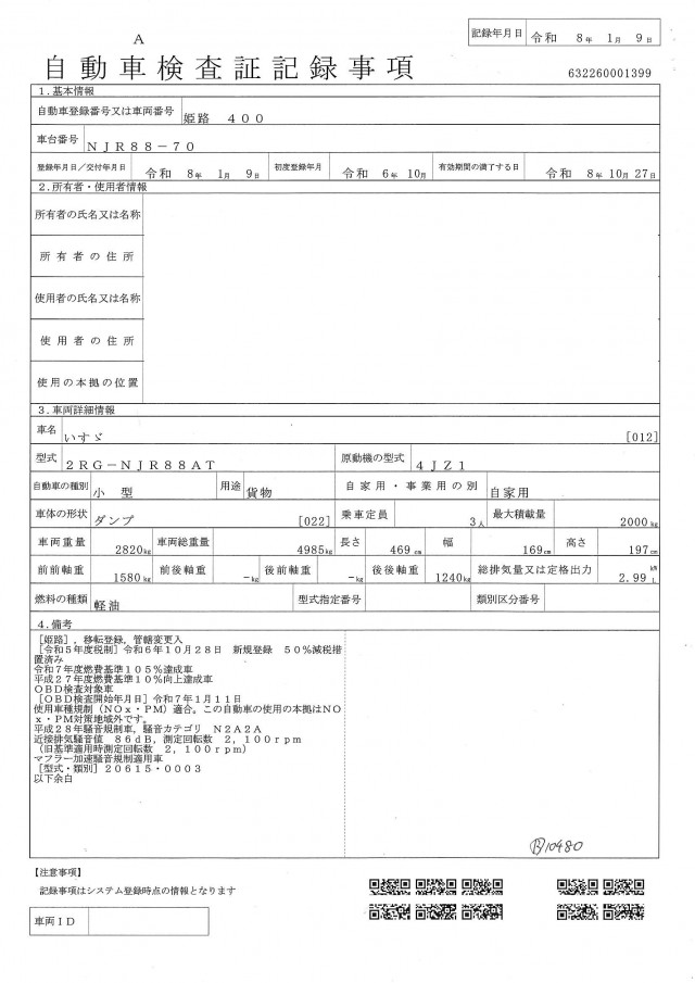 型 式TPG-NJR85AD