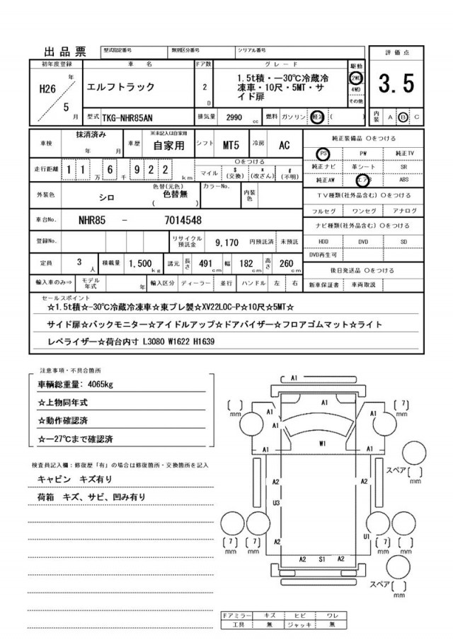 キャビン キズ有り・荷箱 キズ、サビ、凹み有り
