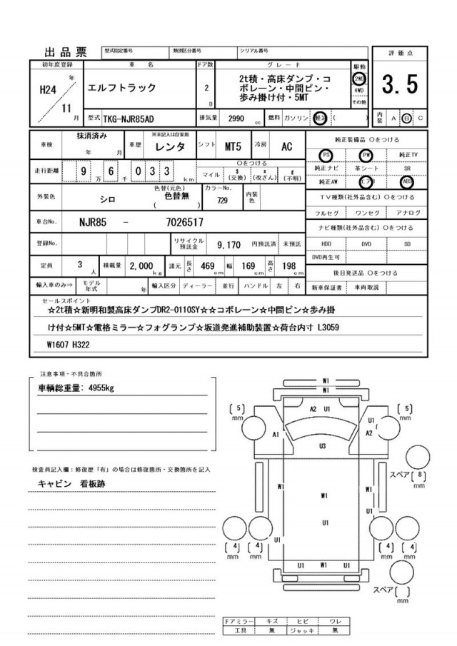 ☆2t積☆新明和製高床ダンプDR2-0110SY☆☆コボレーン☆中間ピン☆歩み掛け付☆5MT☆電格ミラー☆フォグランプ☆坂道発進補助装置☆荷台内寸 L3059 W1607 H322