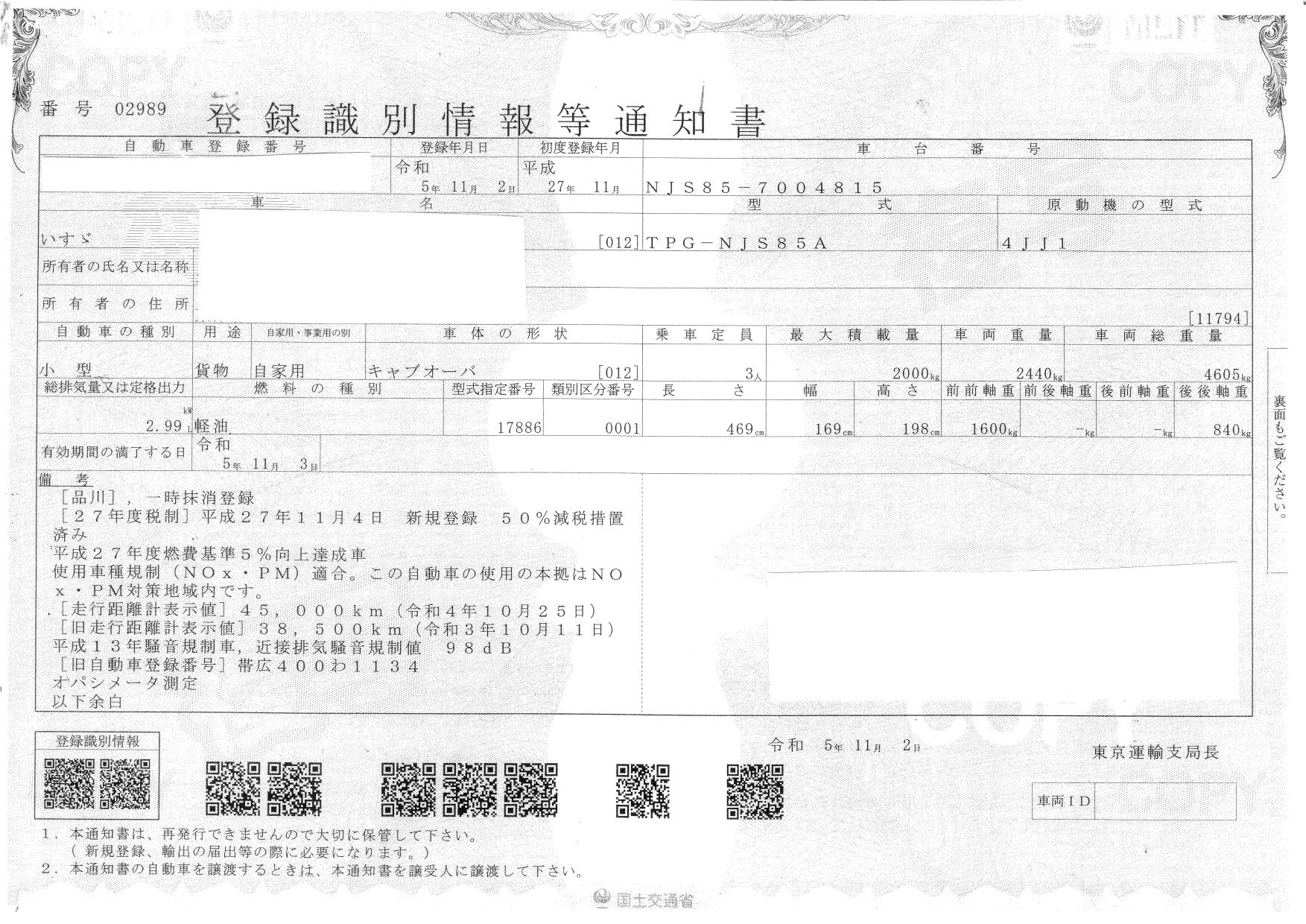 | 車検 | 抹消 |