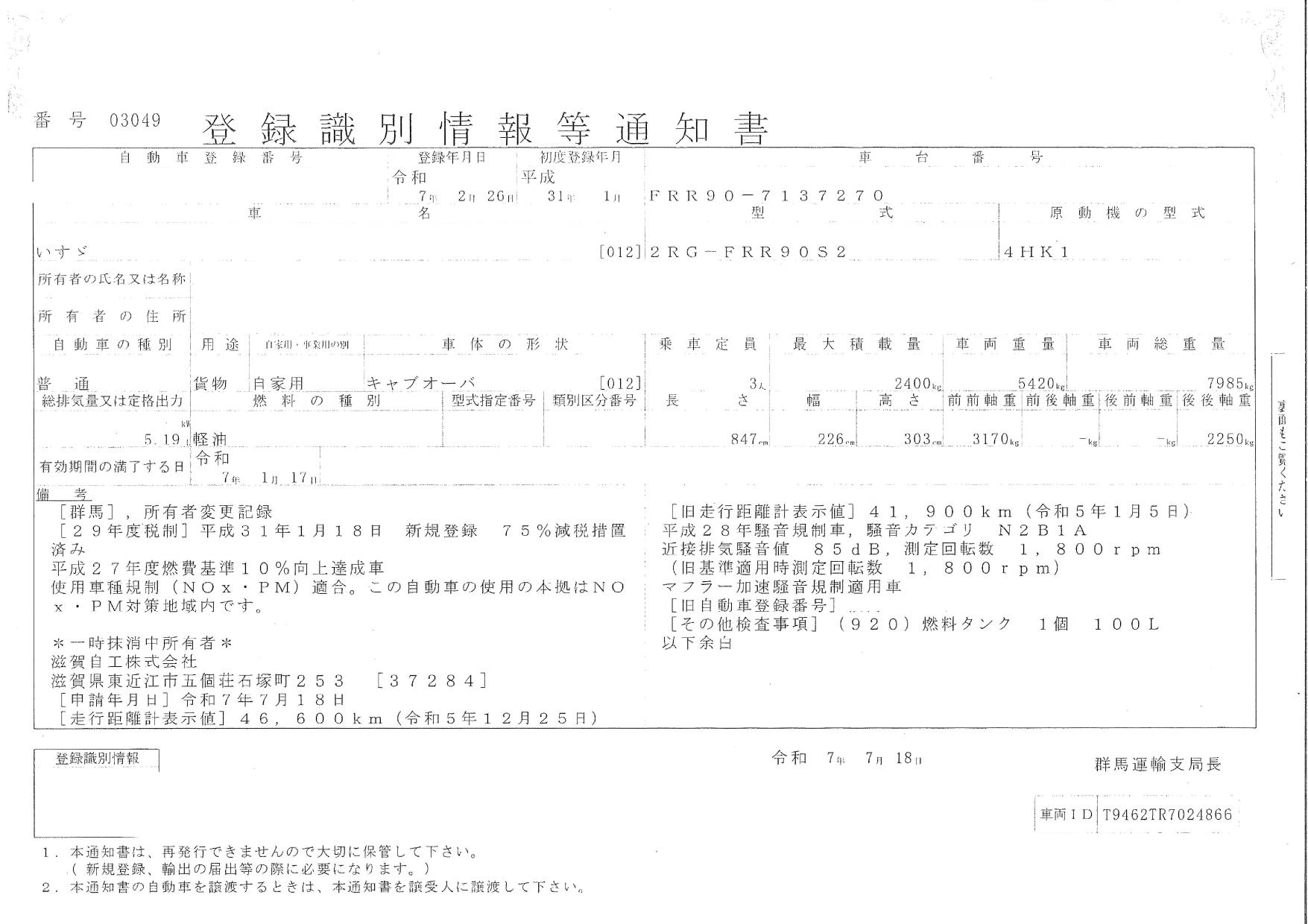 ①所々サビ少々 ②床傷み,補修部有り ③煽り細かい凹少々 ④フロントバンパー左凹