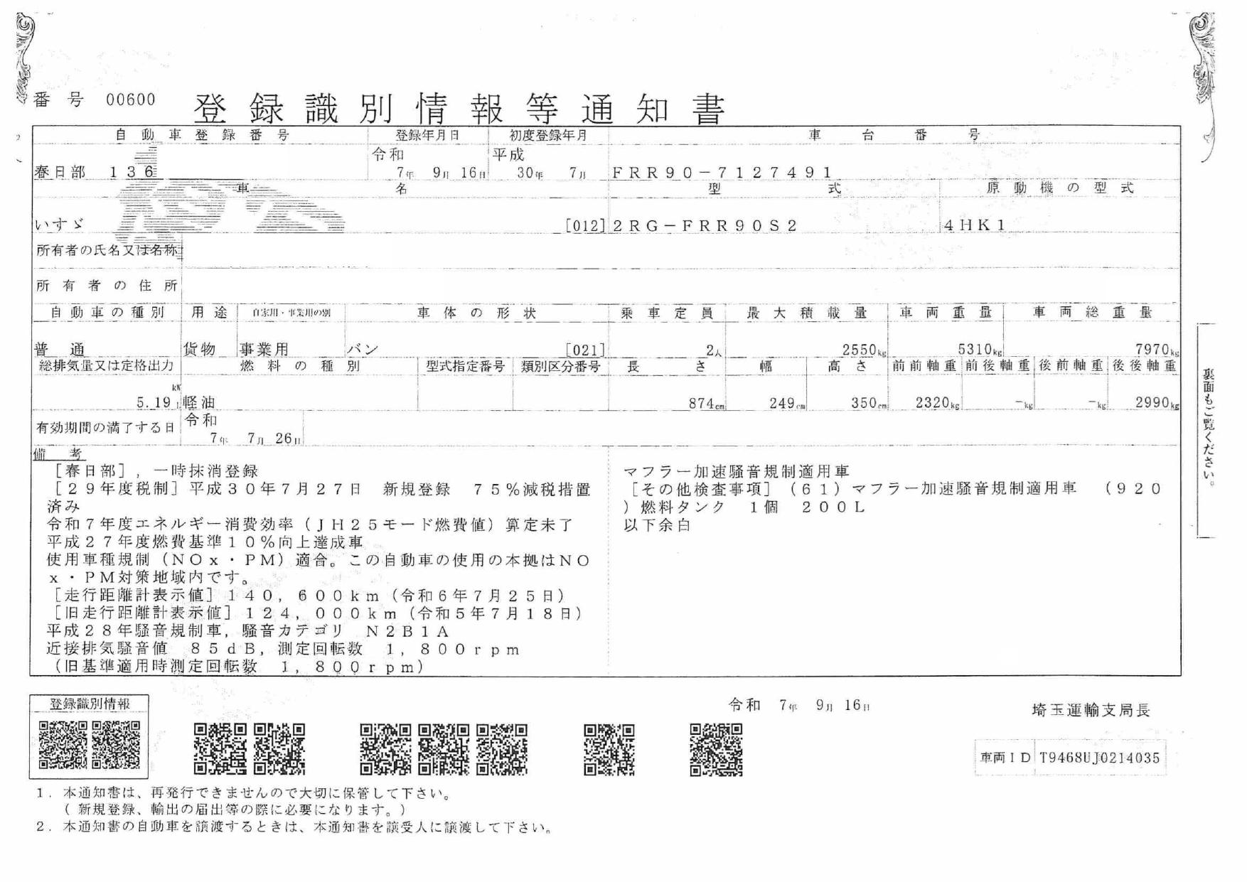 | 車検 | 抹消 |