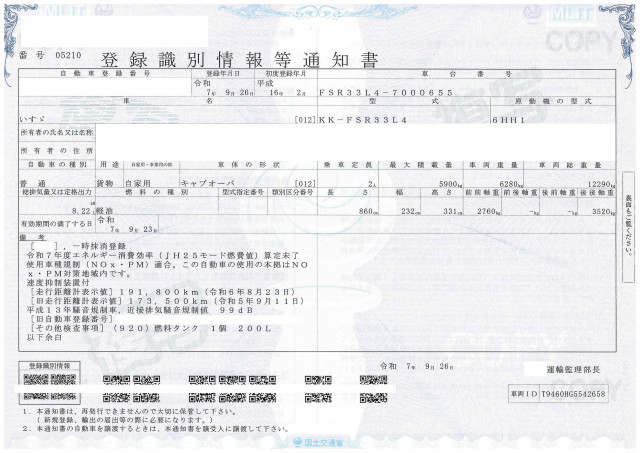 原動機/馬力 | 6HH1/225PS |