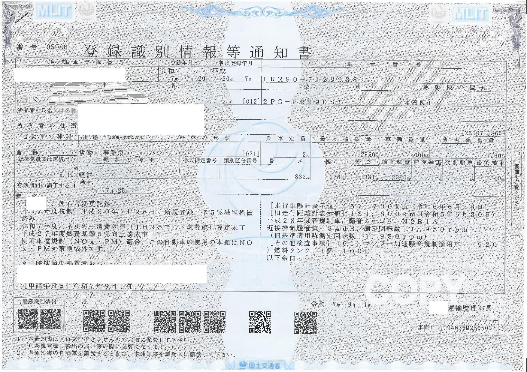 ※抹消車両は、登録時最大積載量が減トンされる可能性が御座います。