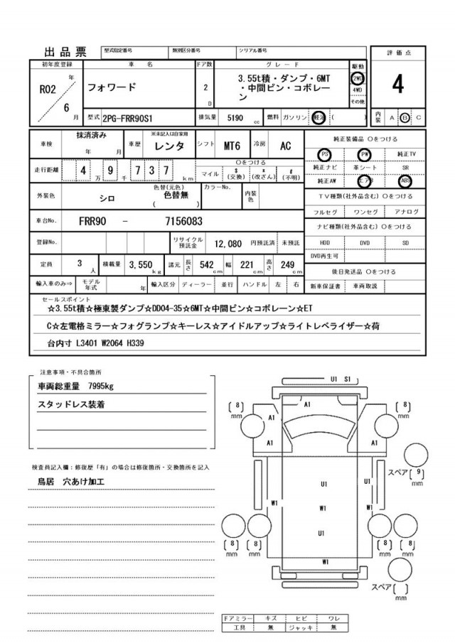 ☆3.55t積☆極東製ダンプ☆DD04-35☆6MT☆中間ピン☆コボレーン☆ETC☆左電格ミラー☆フォグランプ☆キーレス☆アイドルアップ☆ライトレベライザー☆荷台内寸 L3401 W2064 H339