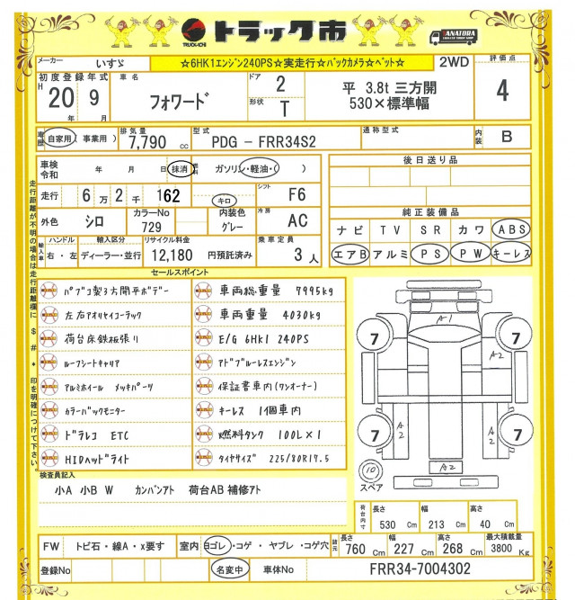★平ボディー★パブコ製★240PS★6HK1エンジン★ベッド★左右アオリセイコーラック★荷台床鉄板張り★ルーフシートキャリア★アルミホイール★メッキパーツ★カラーバックモニター★ドラレコ★ETC★キーレス★保証書★ワンオーナー★HIDライト★