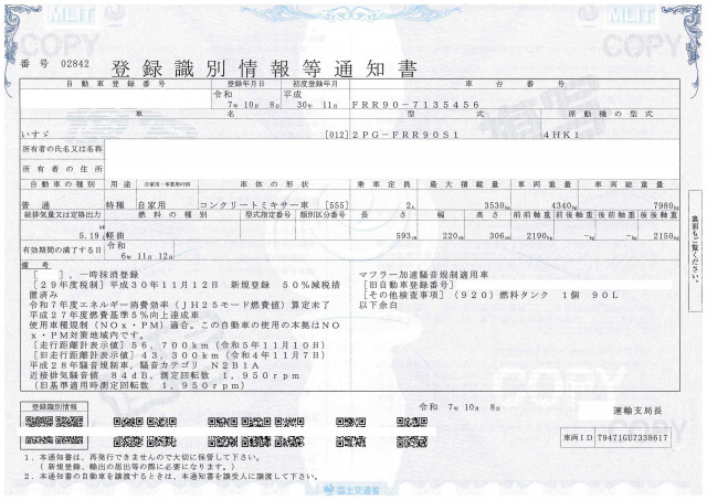 ★リーフサス ★実走行 ★5190cc(ターボ190馬力) ★2人乗り ★ミッション 6速マニュアル ★積載3530kg(抹消前) ★コンクリートミキサー車/生コン車 ★電動スランプガード/ホッパーカバー ★水タンク ★上物 新明和製 MW157-31 ★ドラム 新明和製 K-157 ドラム容量3.0立米 最大混合容量1.5立米 ★ブレーキロック ★坂道発進補助装置