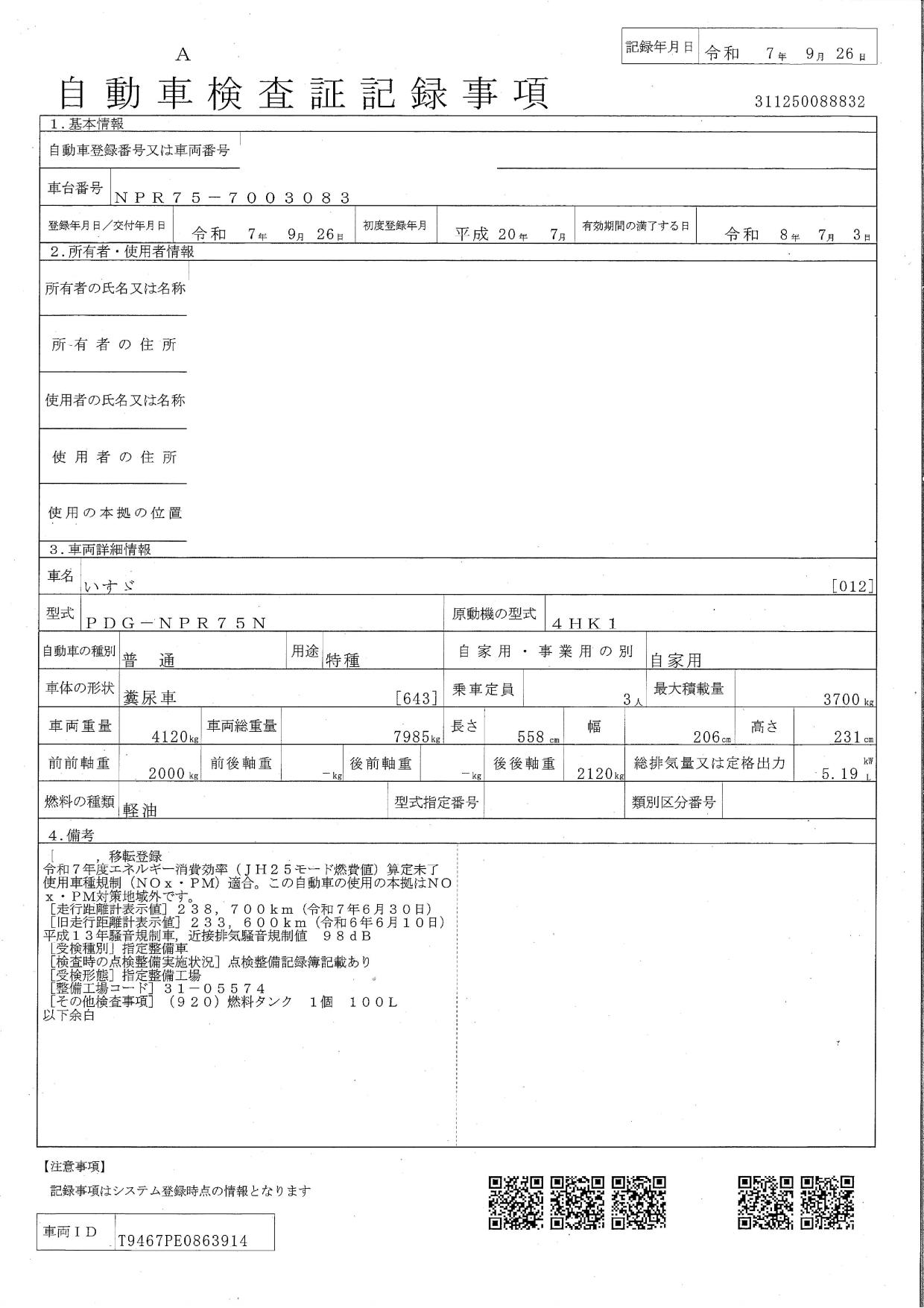 車検 | 車検有 (2026年7月) |