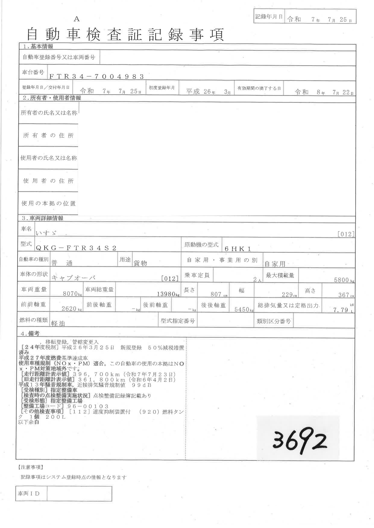 いすゞフォワード 増t木材運搬車 スタンション6本 車検付 Tajfun LIV 型式:L60Z(72) 260馬力 タコグラフ 坂道発進補助装置