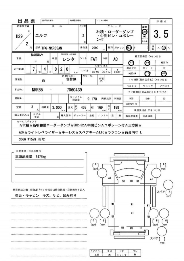 ☆3t積☆新明和製ローダーダンプ☆SD2-32☆中間ピン☆コボレーン付☆三方開☆ASR☆ライトレベライザー☆キーレス☆スペアキー☆ETC☆ラジコン☆荷台内寸 L3066 W1599 H372