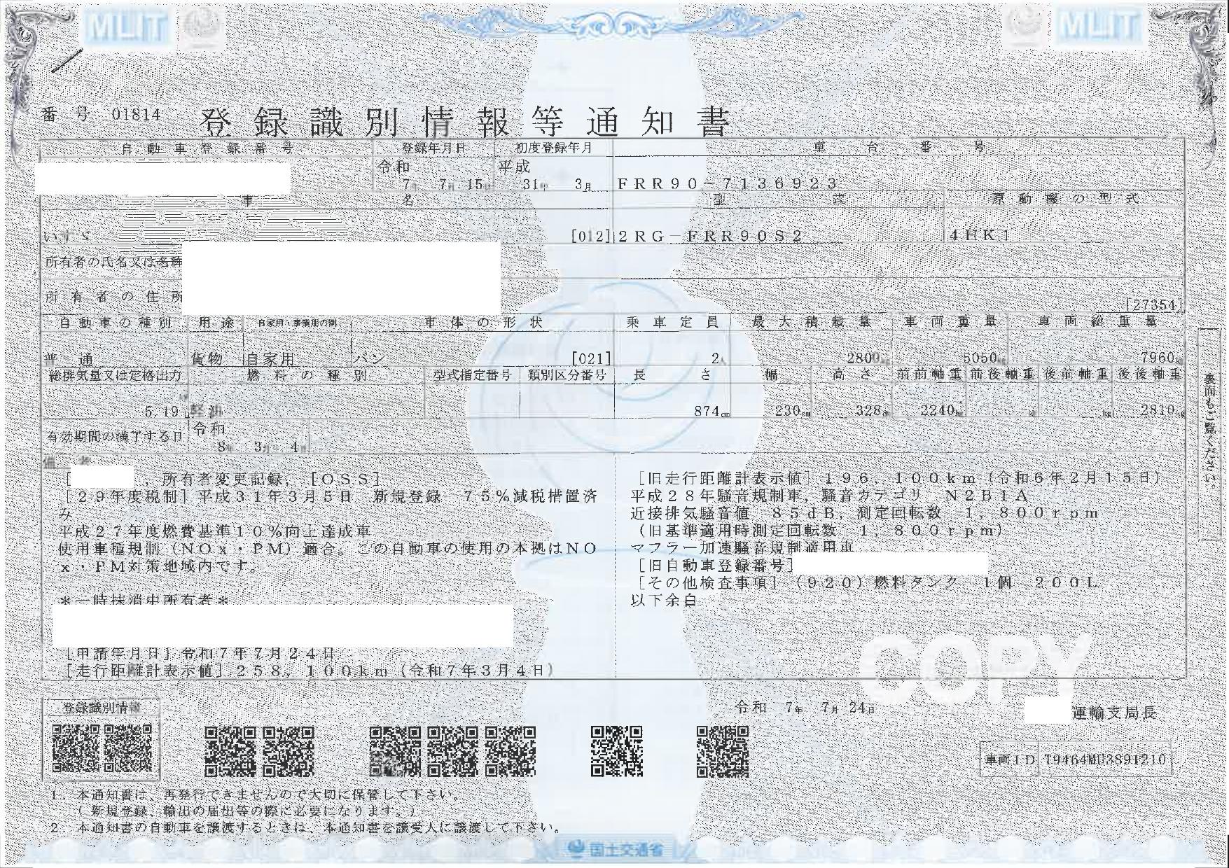 ※抹消車両は、登録時最大積載量が減トンされる可能性が御座います。