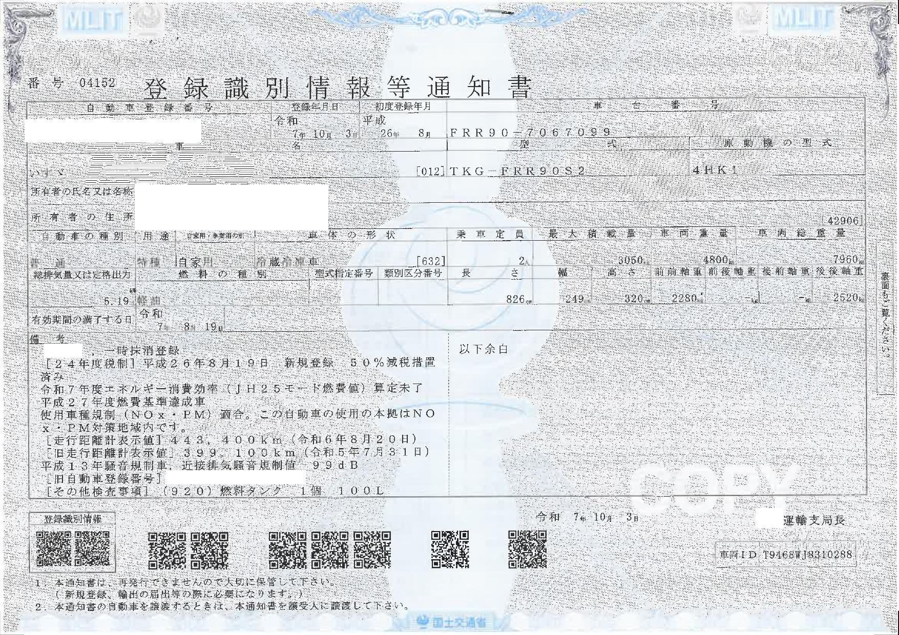 ※抹消車両は、登録時最大積載量が減トンされる可能性が御座います。