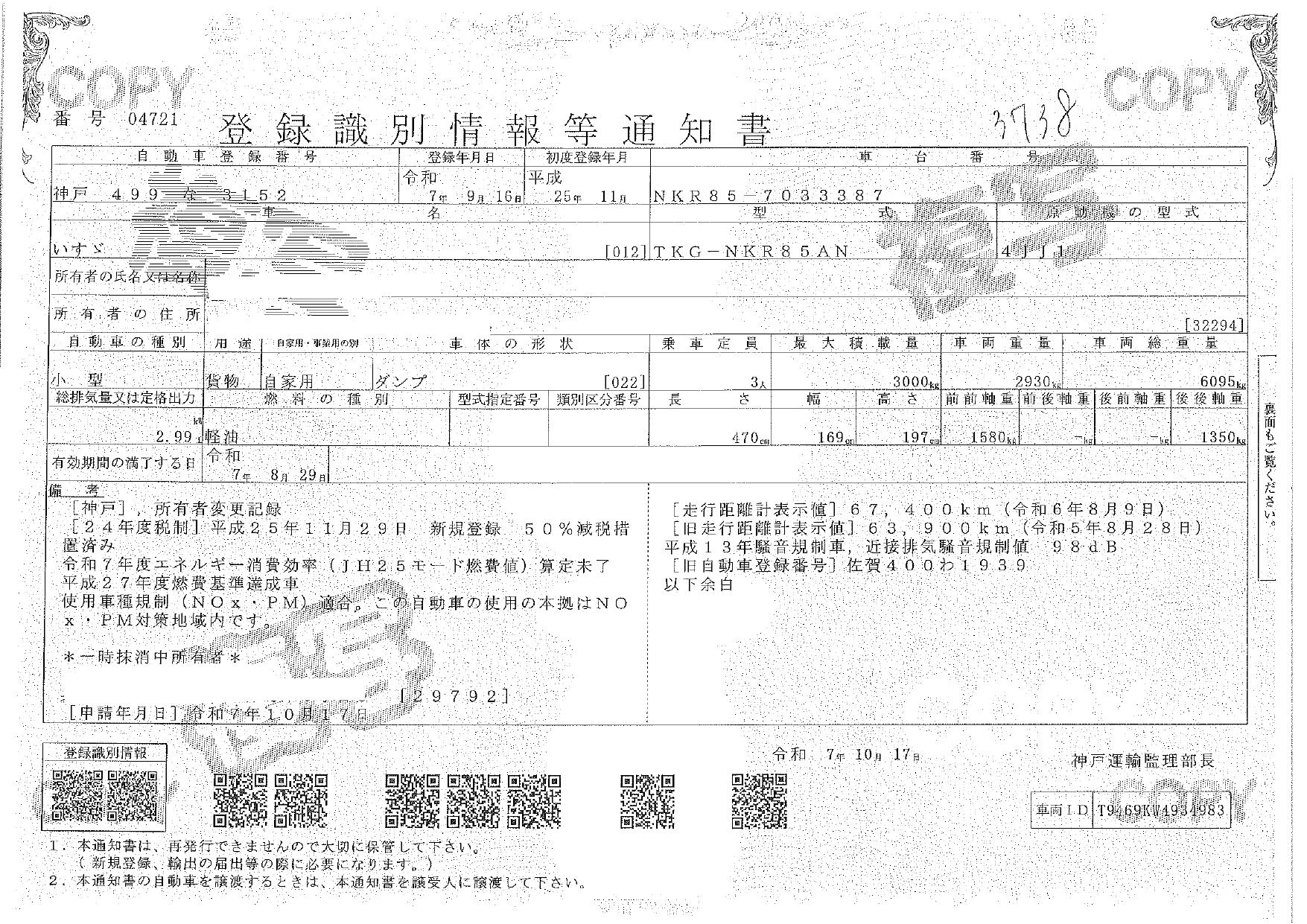 | 車検 | 抹消 |