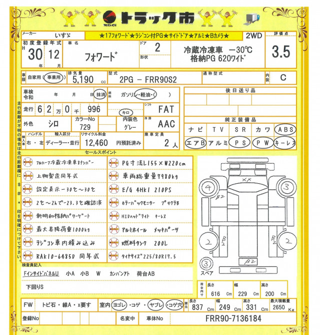 FインサイドパネルU 小A 小B W 看板跡 荷台AB 下回りS 室内汚れ・ヤブレ・焦げ穴
