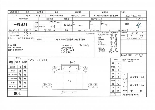 いすゞフォワード 4t脱着式コンテナ専用 極東開発製 型式:JM04-55-C ツインホイスト ラジコン付 坂道発進補助装置 メッキミラーカバー メッキグリル 高年式 低走行車 210馬力