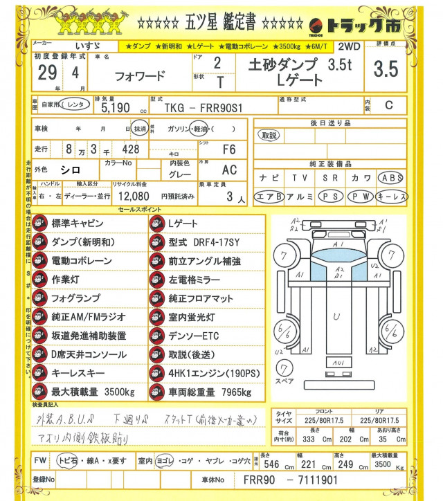| サイズFF | 225/80R17.5 |