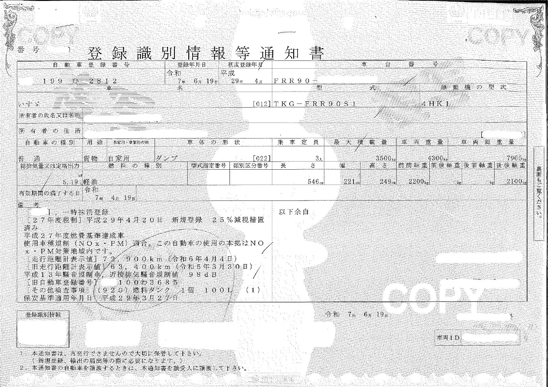 | 車検 | 抹消 |