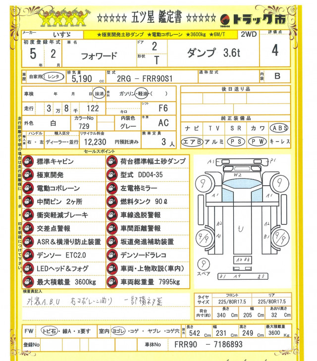 ☆土砂ダンプ☆極東☆標準キャビン☆荷台標準幅☆電動コボレーン☆中間ピン2ヶ所☆左電格ミラー☆衝突軽減ブレーキ☆坂道発進補助装置☆交差点警報☆車線逸脱警報装置☆車間距離警報☆ASR&横滑防止装置☆LEDヘッドライト☆ETC2.0☆ドライブレコーダー☆