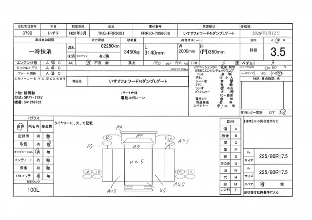 ※一時抹消車のため、登録の際に積載量が減tする可能性があります 詳細は状態表に記載