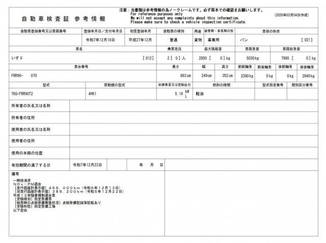 TKG-FRR90T2 H27 いすゞ フォワード アルミウイング フルキャブ/ベッド付き 6200 フルワイド 後輪エアサス 日本トレクス 240馬力 6速 MT マニュアル 4t 8t 中型 バン 箱車