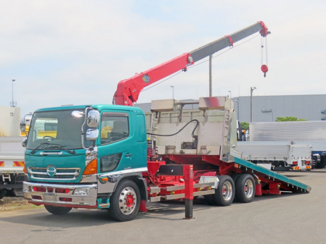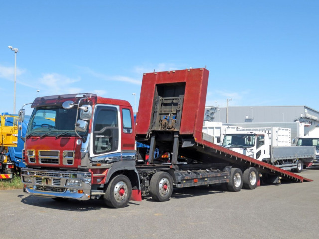 4軸低床・セーフティローダーが入荷いたしました。 ミッションはMT7速・エンジンは380馬力でAdblueは無し・電磁式リターダ付きです。 荷台内寸は(L=8.84m、W=2.49m)で積載量は12,100㎏とれております。 セーフティは大類鉄工所製でウインチとラジコン付きとなっております。 自動歩みがついており、総輪エアサス仕様なので積載する重機にも優しい一台です。 年式は少し古いですが、その分お求めやすい一台です! 是非この機会にお問い合わせください!