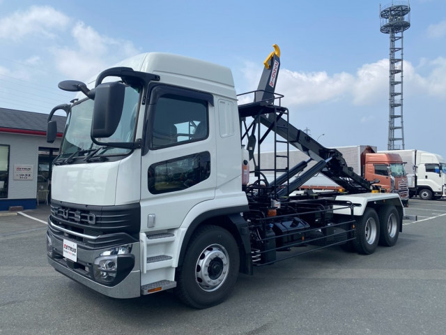 QKG-CYZ77AM 車検付 令和8年6月迄 H27 いすゞ ギガ 脱着装置付コンテナ専用車 6×4 3軸2デフ 新明和工業 アームロール ツインホイスト リアジャッキ 380馬力 7速 MT マニュアル 10t 22t 大型 特装車
