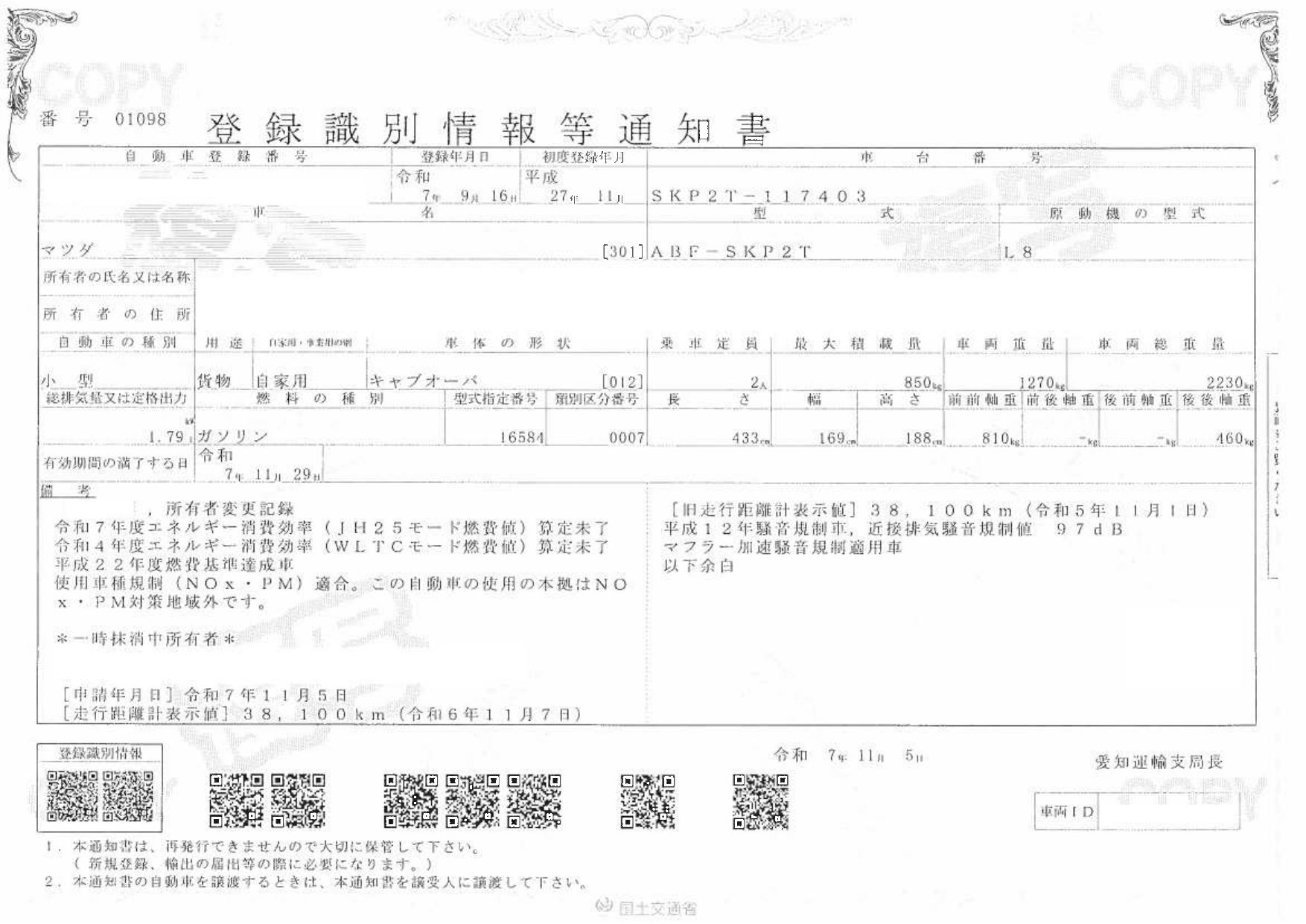 | 車検 | 抹消 |