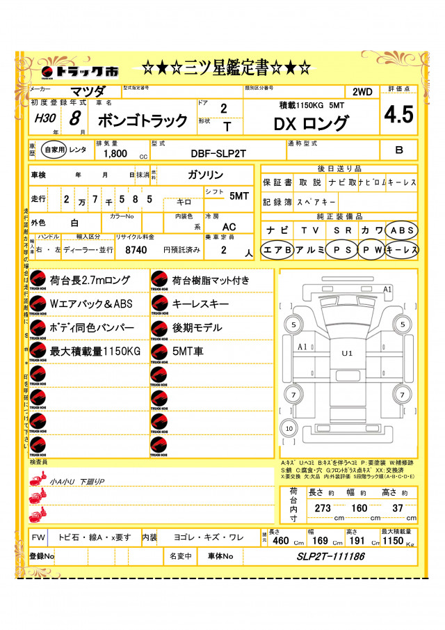 DX 荷台長2.7mロング 荷台ゴムマット付き キーレスキー 5MT 積載1150KG