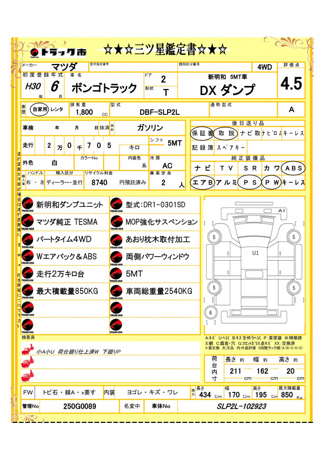 DX ダンプ 4WD マツダ純正特装車TESMA 積載850KG 新明和製ダンプユニット 強化サスペンション パートタイム4WD 5MT
